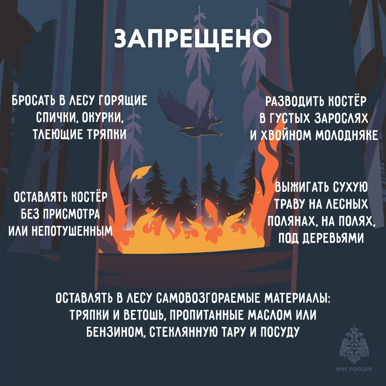 не разводите костры в лесу и на открытых участках без соблюдения правил безопасности;