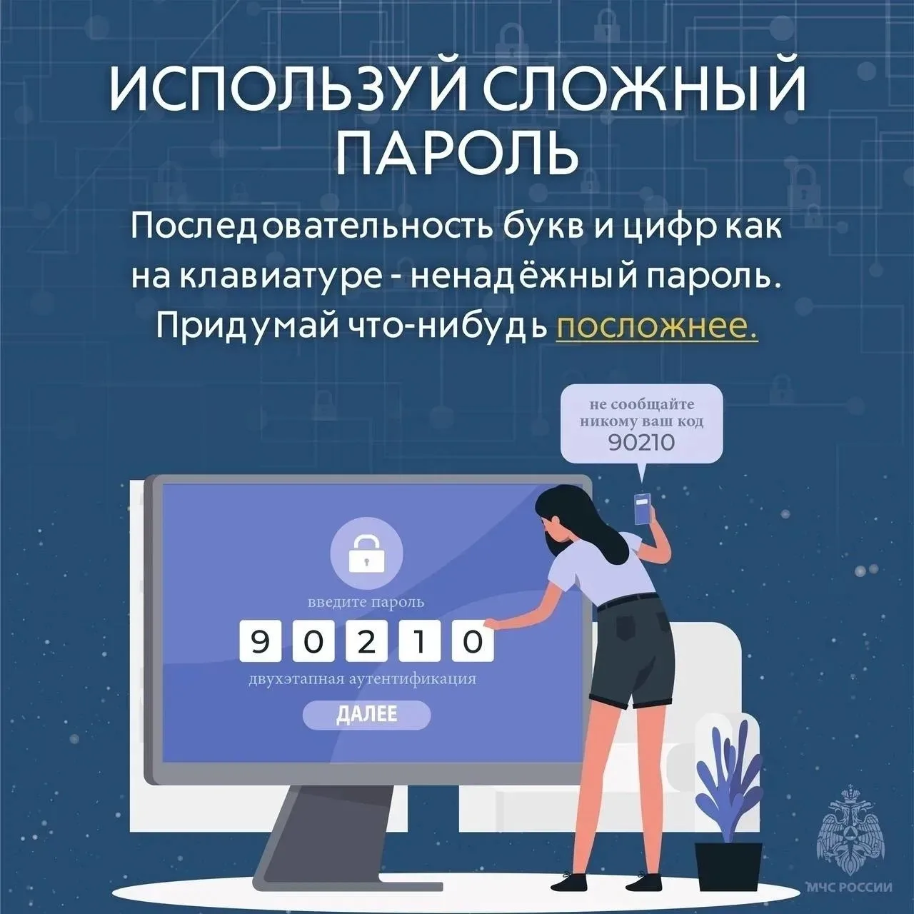 используйте сложные пароли и не повторяйте их на разных сайтах;