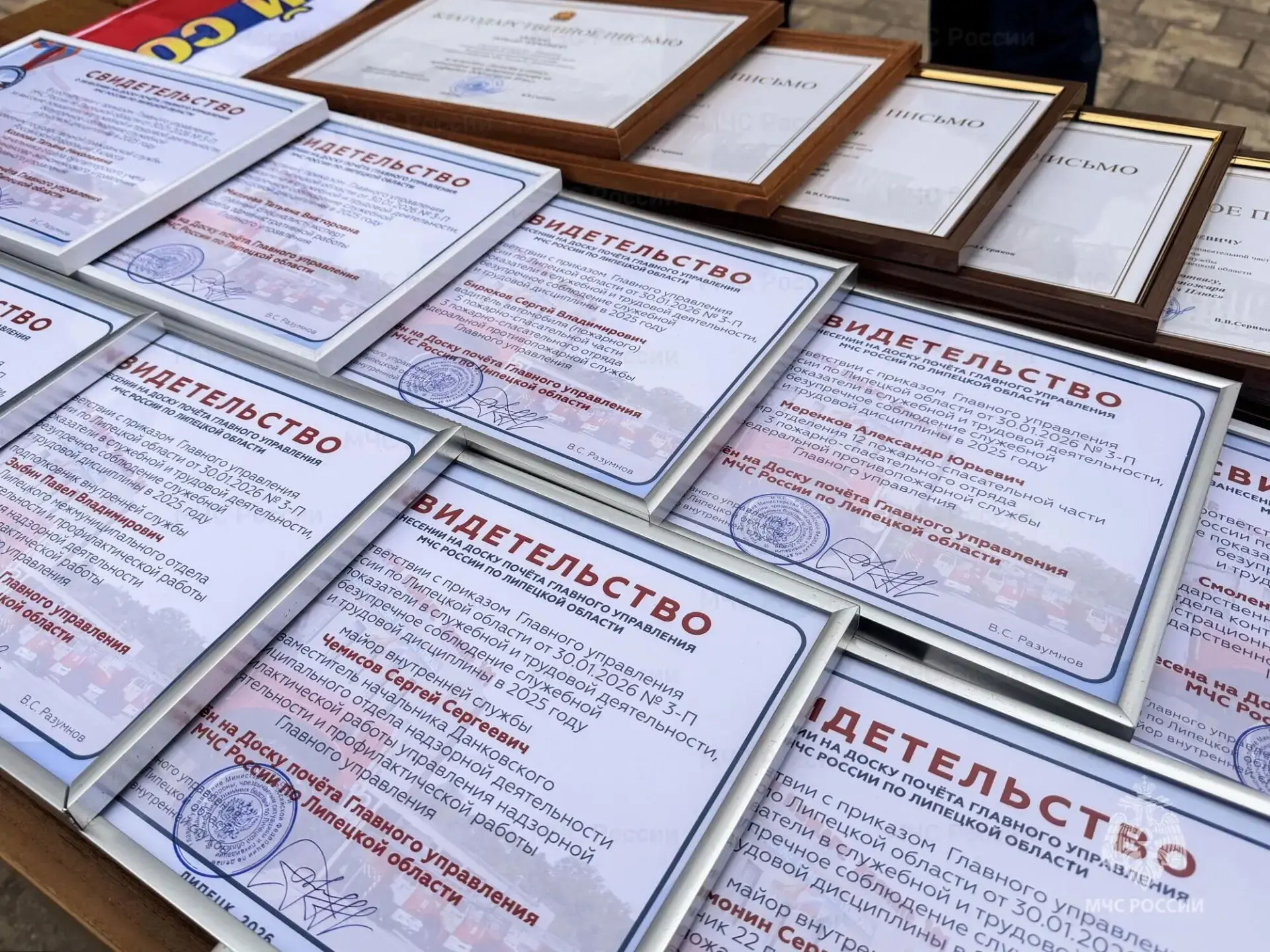 Кроме того, сотрудники Главного управления сегодня получили Благодарности Липецкого областного Совета депутатов за высокий профессионализм и выполнение задач в условиях, сопряжённых с высоким риском для жизни, при ликвидации возгорания на нефтебазе, произошедшего в следствие атаки БПЛА в начале этого года.