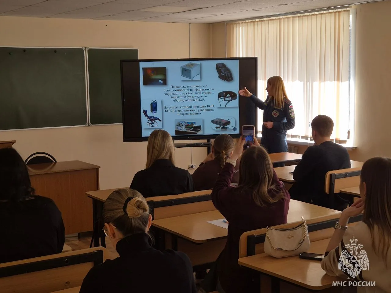 В рамках ознакомительной практики старший психолог-инспектор Главного управления МЧС России по Липецкой области Татьяна Нижегородова провела встречу со студентами института психологии и образования ЛГПУ имени П.П. Семёнова-Тян-Шанского. Ребята познакомились с деятельностью и повседневными задачами психологической службы ведомства.