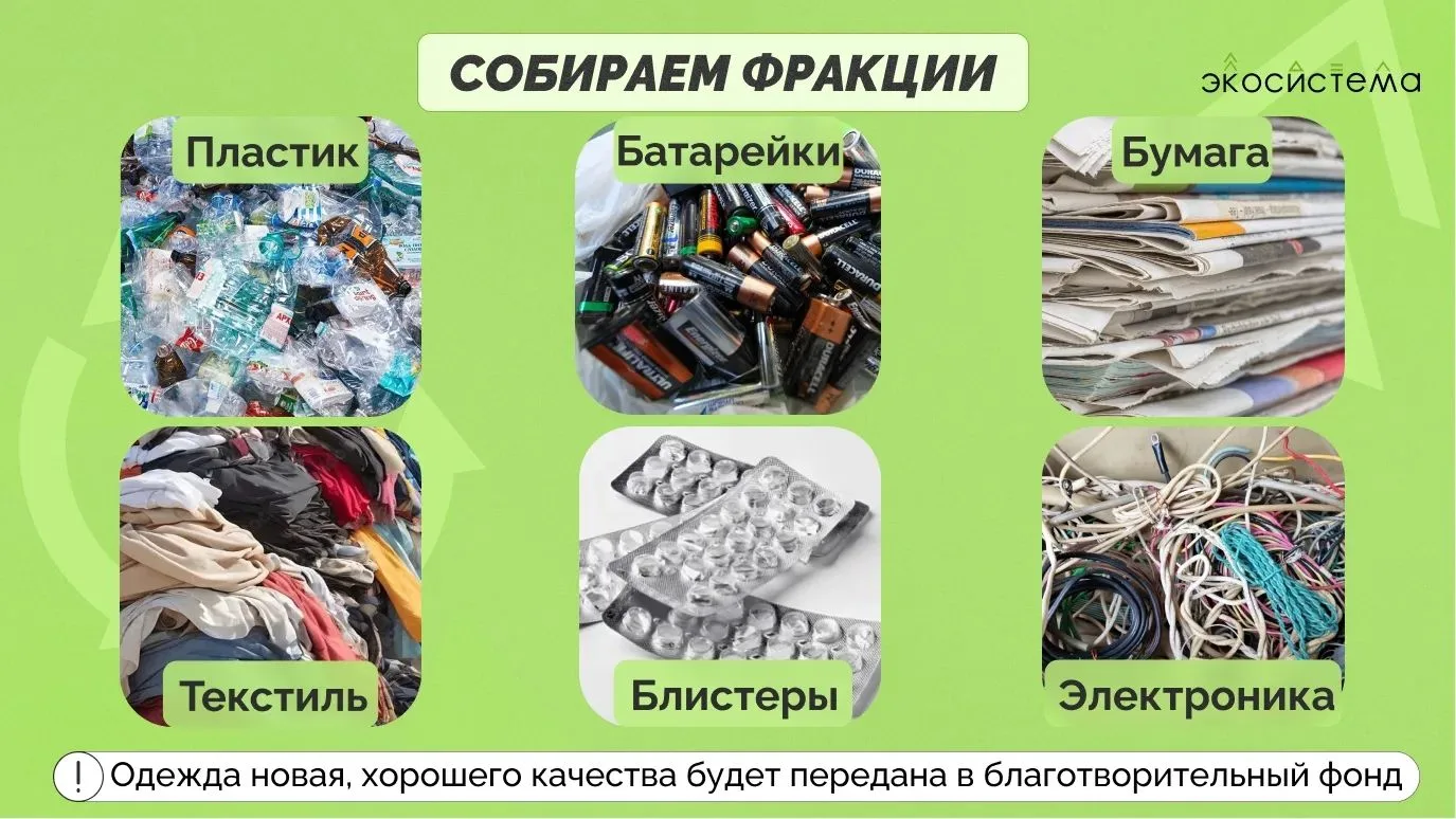 Обратим внимание, сырьё рекомендуется приносить заранее и в разных пакетах, чтобы ускорить процесс сбора. Вещи в хорошем состоянии собирайте отдельно.