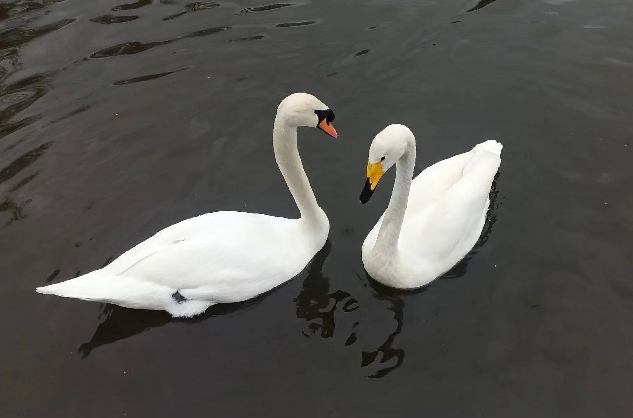 Перед вами два вида лебедей: кликун и шипун. Оба вида водятся в нашей местности и занесены в Красную книгу Липецкой области.