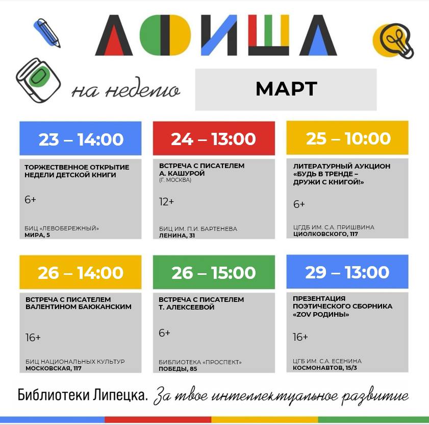 Афиша мероприятий в библиотеках Липецка на следующую неделю