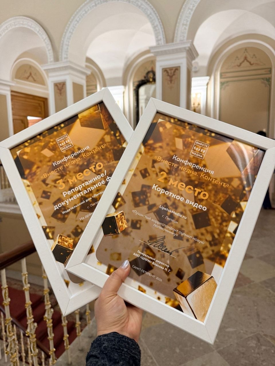 Наша редакция была представлена в пяти шорт-листах конкурса. В итоге два проекта получили призовые места. Работа «Пушистый корреспондент оценил новую поликлинику» заняла второе место в номинации «Короткое видео» и получила высокую оценку жюри за оригинальную подачу.