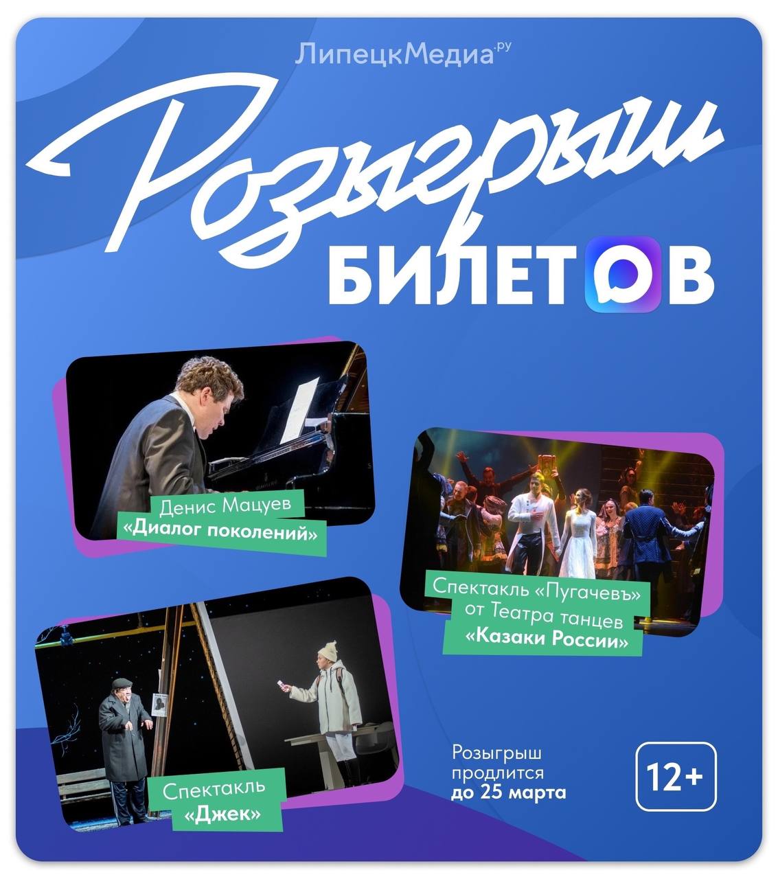 Выбранные случайным образом три подписчика получают по два билета на ближайшие культурные события в Липецке!