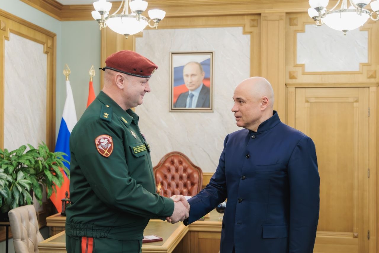 Встретился с Героем России, генерал-лейтенантом Вячеславом Пытковым — первым заместителем командующего Центральным округом войск национальной гвардии Российской Федерации и начальником территориального управления Росгвардии генерал-майором полиции Игорем Барановым. В это воскресенье ведомство отмечает 10 лет со дня основания. Поздравил Вячеслава Владимировича и его сослуживцев.