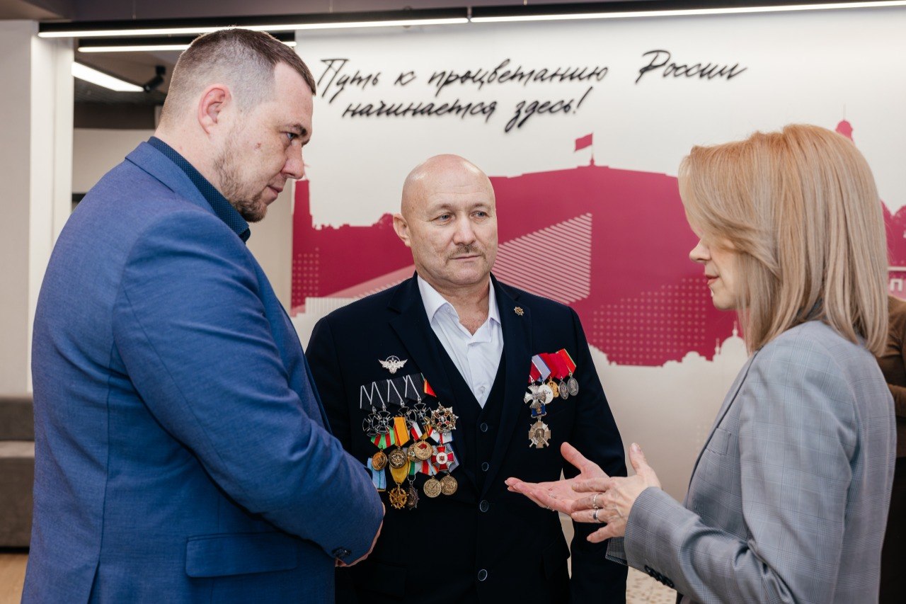 Директор Липецкого филиала Президентской академииЕлена Гончарова встретилась с представителями Ассоциации ветеранов СВО Липецкой области и группы «Маэстро» — Данилом Бобровским и Александром Ястребом.