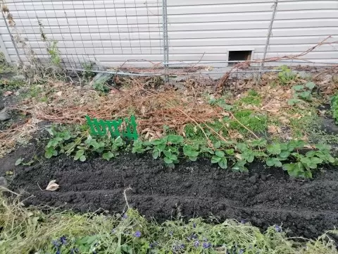 - Обрезка винограда завершена. Вдоль рядка земляники была прокопана траншея, в которую отправится мелкий репчатый лук. Это решение не только сократит время на чистку, но и обеспечит дополнительную зелень и головки в будущем.