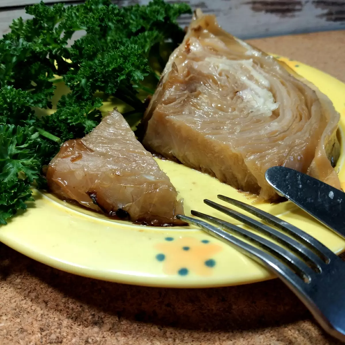 Печеная капуста прекрасно сочетается с различными соусами, например, чесночным маслом или соевым соусом. Некоторые ценители рекомендуют подготовить капусту в огуречном рассоле для нежного вкуса. Это блюдо можно подавать как холодную закуску, дополнять сметаной, зеленью или соленым сыром.