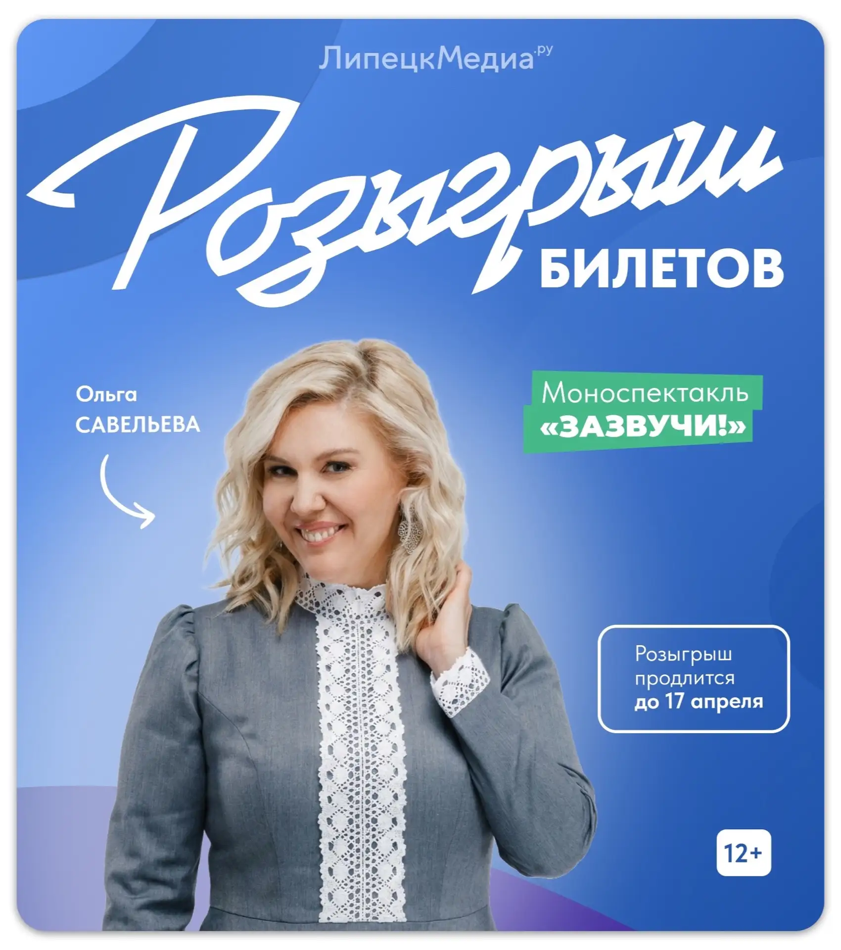 Специально для подписчиков ЛипецкМедиа разыгрываем 2 билета на моноспектакль «Зазвучи» от Ольги Савельевой – писательницы, собравшей чувственные истории людей о том, как они решились жить ярко и интересно!