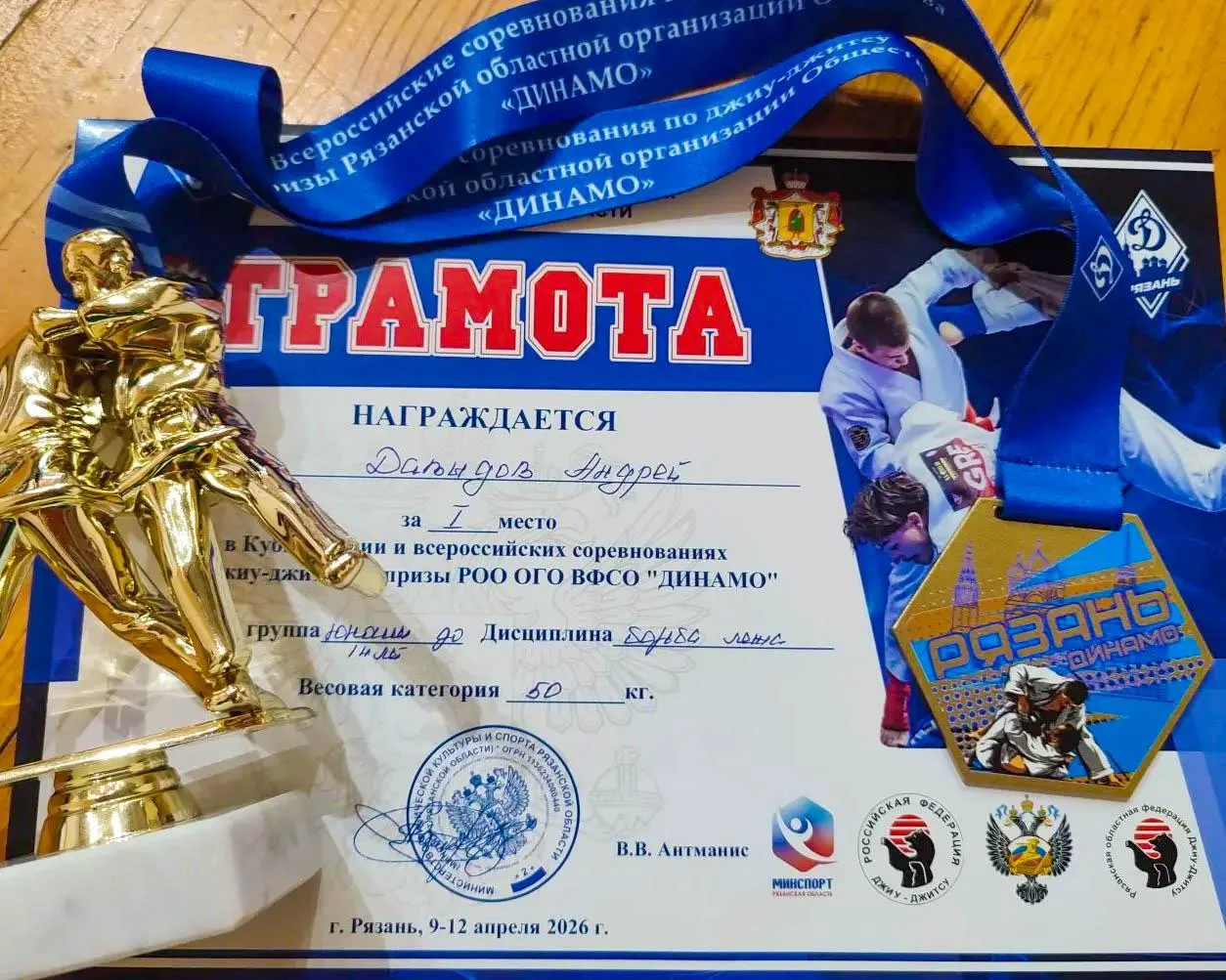 Андрей Давыдов выступал в категории до 14 лет в весе до 50 кг.