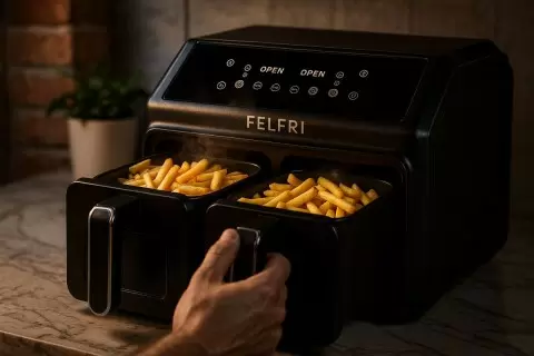 - Чистота на кухне: меньше брызг и запаха масла по сравнению с традиционными методами.