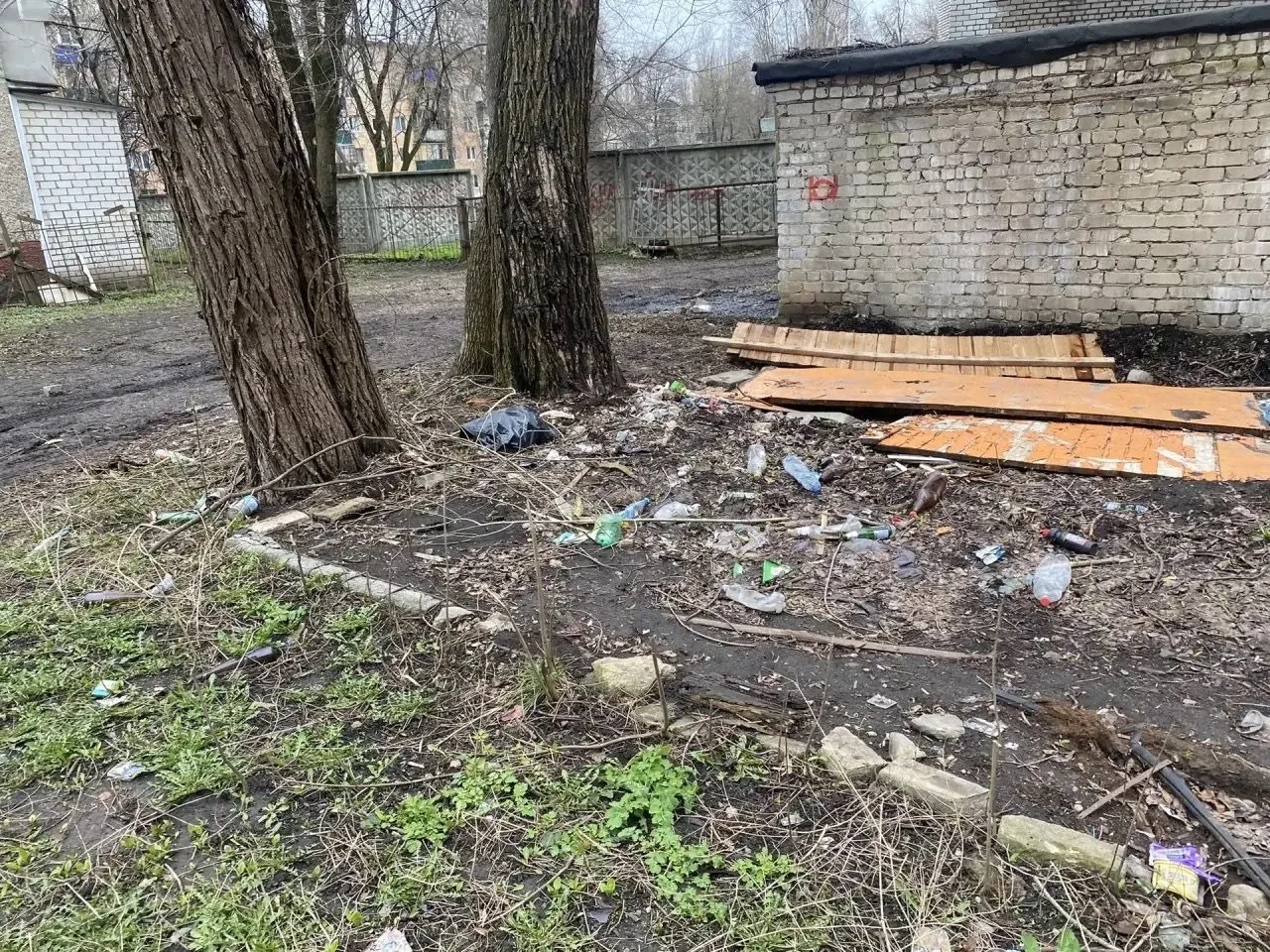 – собран многочисленный мусор, оставленный жителями близлежащих домов.