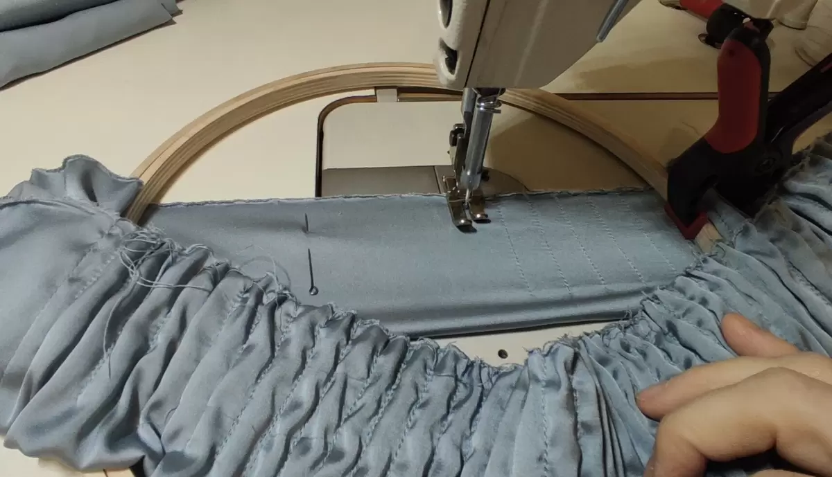 Одним из основных преимуществ является возможность использования технологии, при которой ткань натягивается во время шитья. Это позволяет добиться красивых волн без особых усилий. Однако данный метод работает только на длинных участках ткани, поэтому для замкнутых манжет потребуется немного иная техника.