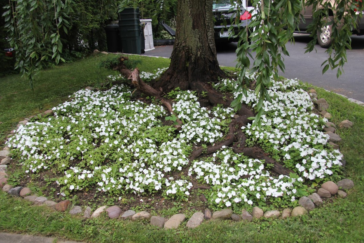 - Следует выбирать виды с неглубокой корневой системой, чтобы избежать повреждения корней дерева.