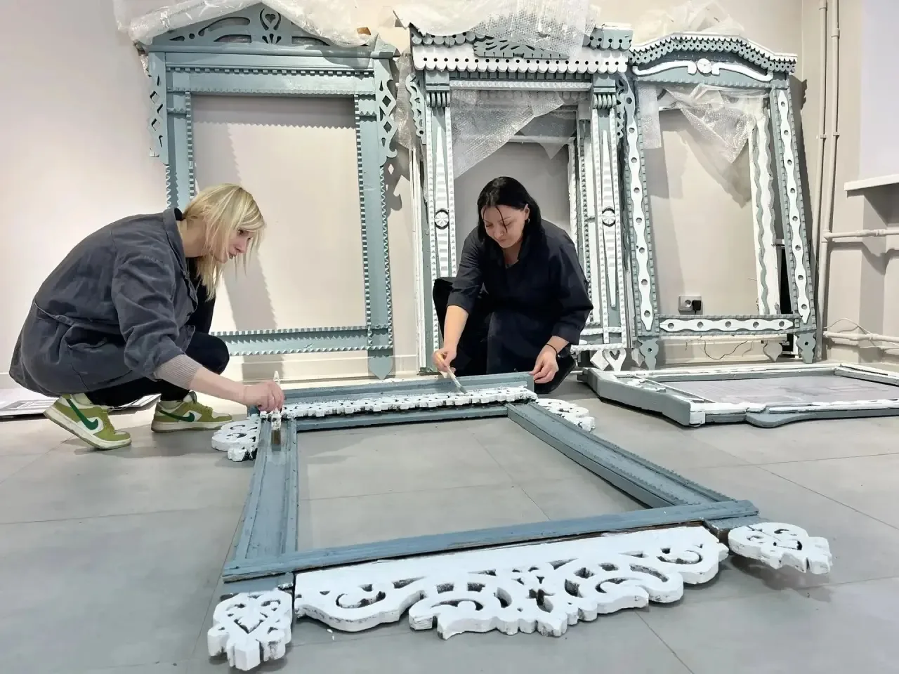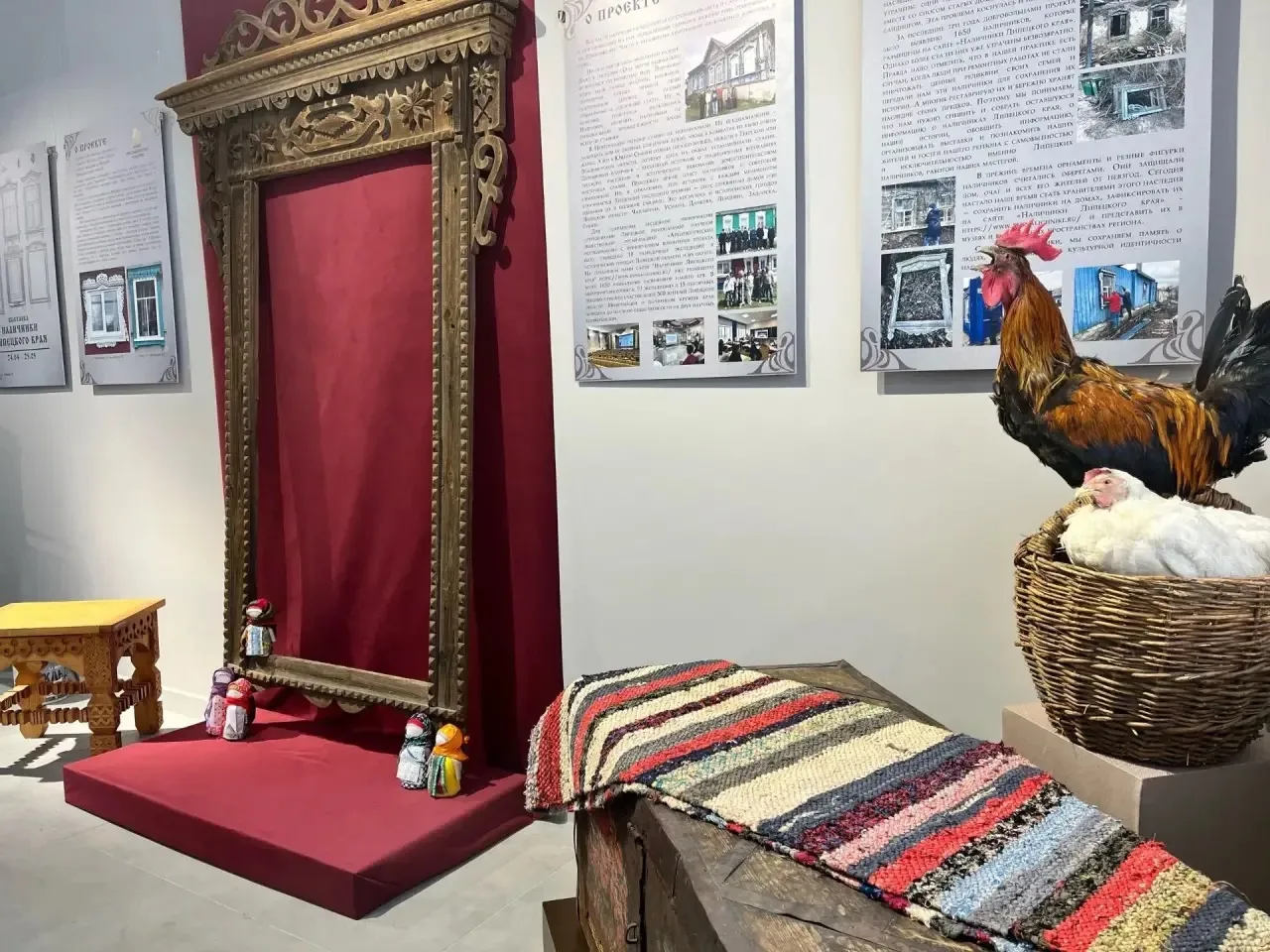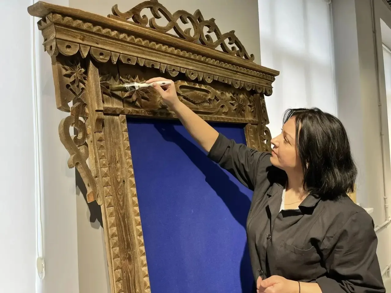 Сейчас подготовка экспозиции уже вышла на финишную прямую. Специалисты реставрируют резные наличники, подбирают им цвет, монтируют композиции и оформляют фотозону в стиле сельской усадьбы. Поэтому вы сможете сделать атмосферный кадр «из прошлого».