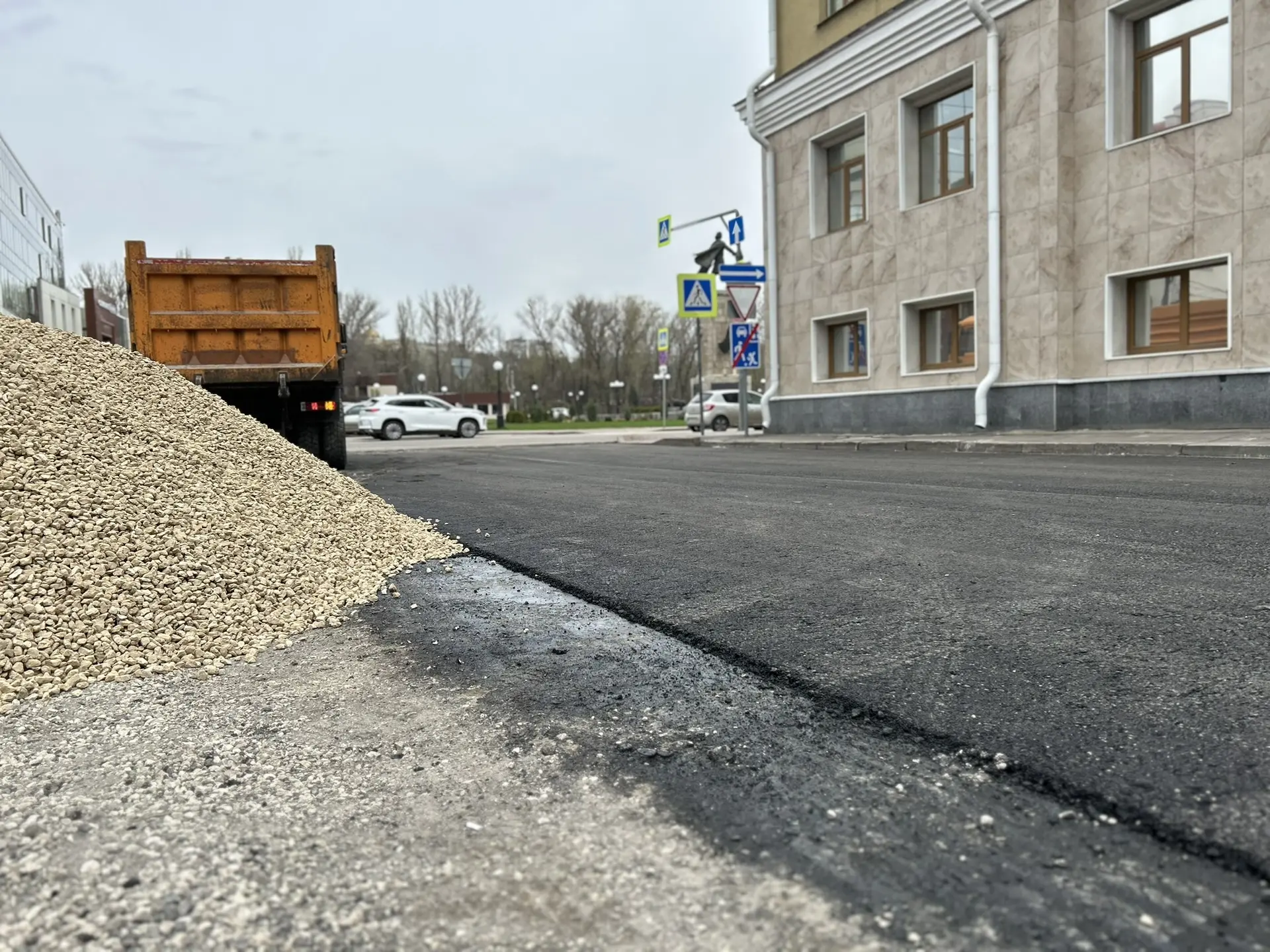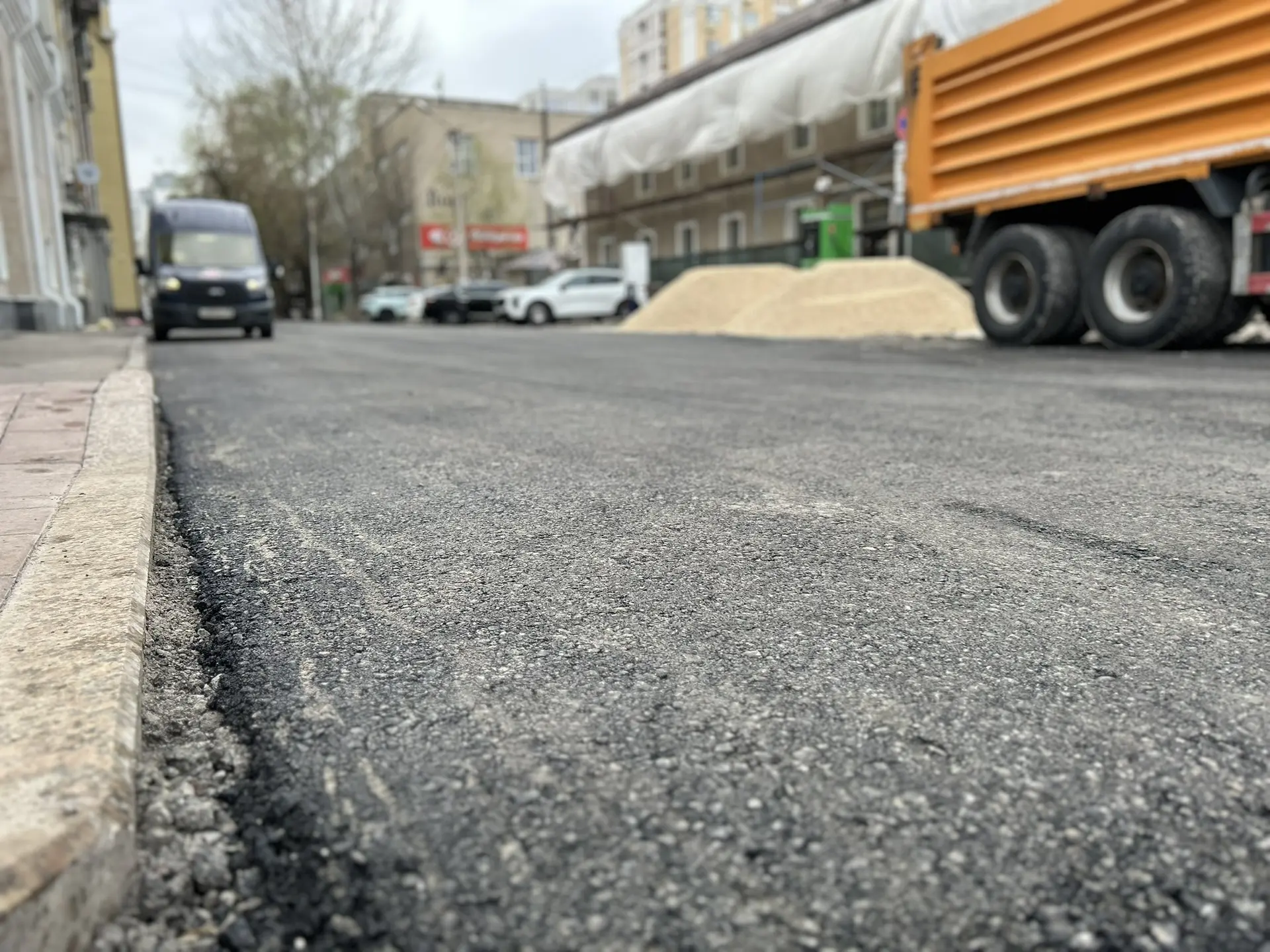 уложили новое покрытие на проезжей части.