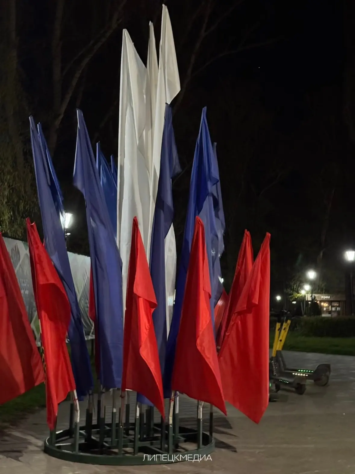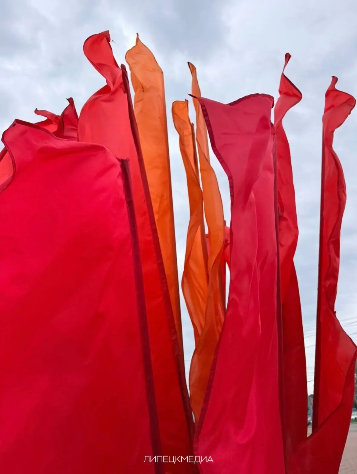Улицы, площади и дорожные кольца украшают яркими флажками в оранжево-красных оттенках и цветах флага России.