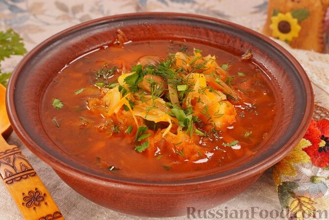 - Фасолевый суп со свининой и квашеной капустой. Насыщенный и сытный, этот суп готовится на быстром мясном бульоне с добавлением квашеной капусты и консервированной фасоли. Каждый глоток настолько богат и ароматен, что создаёт ощущение домашнего уюта.