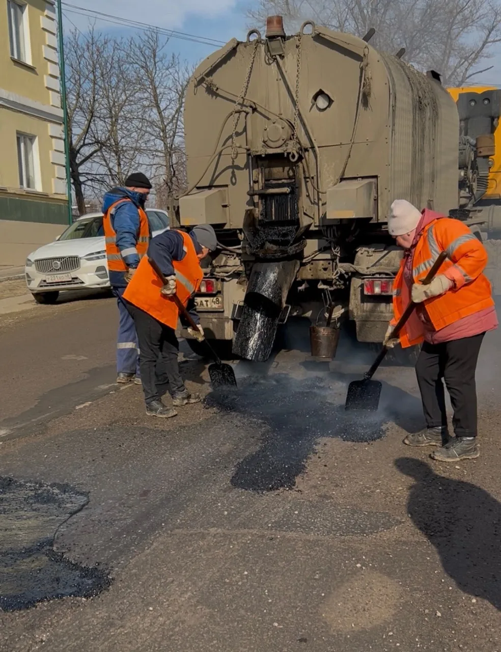Пока, в зависимости от погоды, специалисты работают двумя составами: литым и горячим асфальтом. Уже в мае запланировано полноценно применять летнюю смесь.